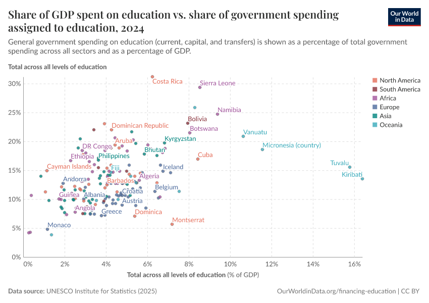 Max Roser and Esteban Ortiz-Ospina (2016) - “Education Spending” Published online at OurWorldinData.org. Retrieved from: 'https://auto-wildfires.owid.pages.dev/financing-education' [Online Resource]BibTeX citation