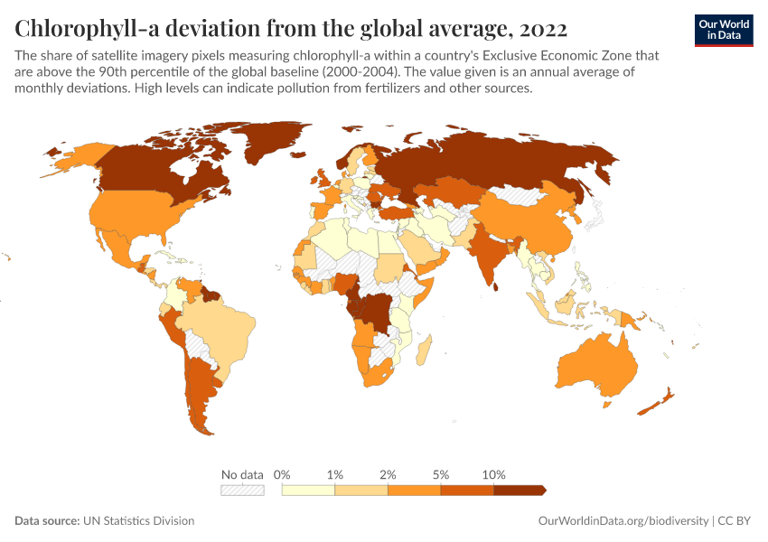 “Data Page: Chlorophyll-a deviation from the global average”. Our World in Data (2026). Data adapted from UN Statistics Division. Retrieved from https://auto-wildfires.owid.pages.dev:8789/20260130-180113/grapher/chlorophyll-a-deviation-from-the-global-average.html [online resource] (archived on January 30, 2026).How to cite this data