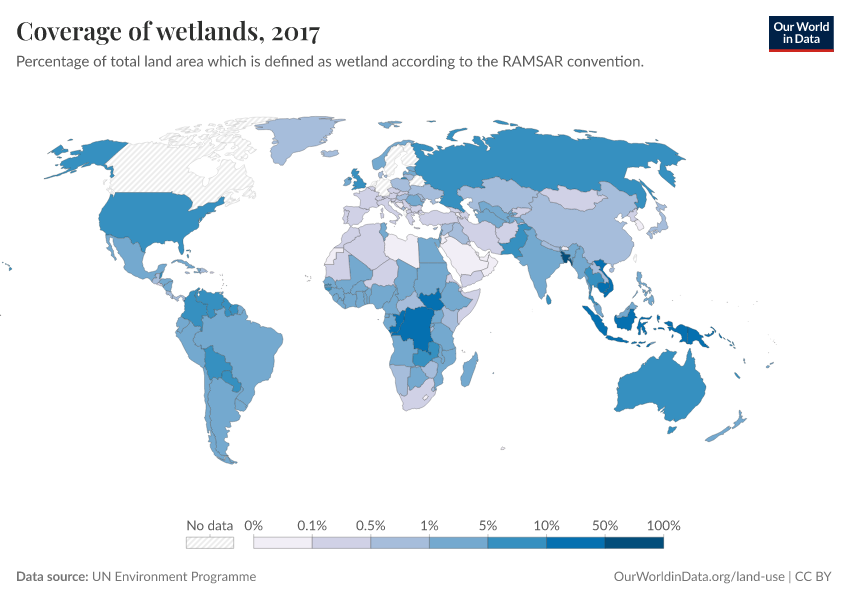 “Data Page: Coverage of wetlands”. Our World in Data (2026). Data adapted from UN Environment Programme. Retrieved from https://auto-wildfires.owid.pages.dev:8789/20260130-180113/grapher/coverage-of-wetlands.html [online resource] (archived on January 30, 2026).How to cite this data