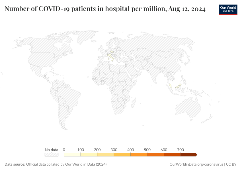 Official data collated by Our World in Data (2024) – processed by Our World in Data. “Number of COVID-19 patients in hospital per million” [dataset]. Official data collated by Our World in Data, “COVID-19, hospitalisations” [original data]. Retrieved March 2, 2026 from https://auto-wildfires.owid.pages.dev:8789/20250909-093708/grapher/current-covid-hospitalizations-per-million.html (archived on September 9, 2025).