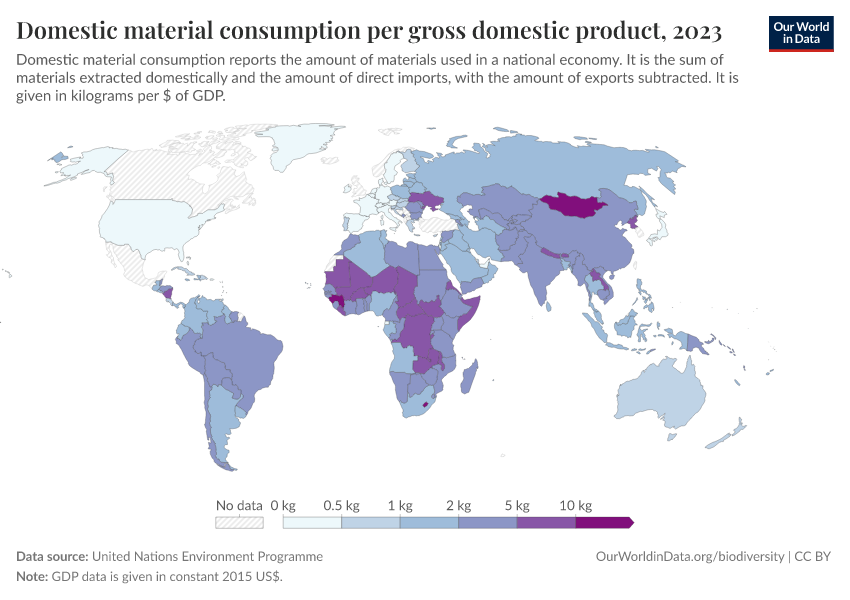 “Data Page: Domestic material consumption per gross domestic product”. Our World in Data (2026). Data adapted from United Nations Environment Programme. Retrieved from https://auto-wildfires.owid.pages.dev:8789/20260130-180113/grapher/domestic-material-consumption-per-unit-of-gdp.html [online resource] (archived on January 30, 2026).How to cite this data