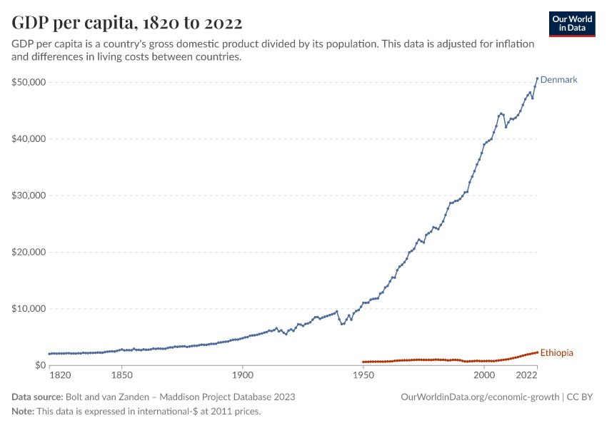 Bolt and van Zanden – Maddison Project Database 2023 – with minor processing by Our World in Data. “GDP per capita – Maddison Project Database – Long-run data in constant international-$” [dataset]. Bolt and van Zanden, “Maddison Project Database 2023” [original data]. Retrieved March 3, 2026 from https://auto-wildfires.owid.pages.dev:8789/20251111-144738/grapher/gdp-per-capita-maddison-project-database.html (archived on November 11, 2025).