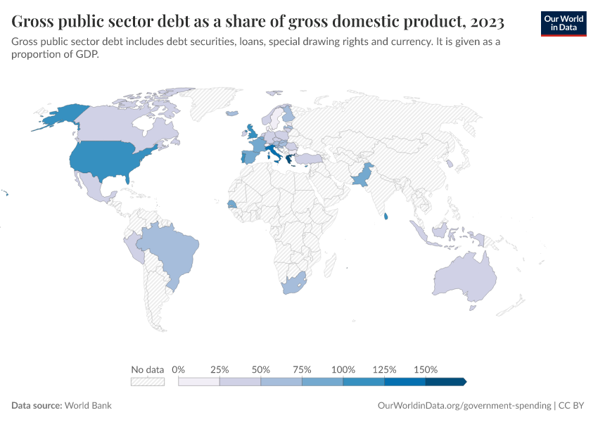 “Data Page: Gross public sector debt as a share of gross domestic product”. Our World in Data (2026). Data adapted from World Bank. Retrieved from https://auto-wildfires.owid.pages.dev:8789/20251120-211749/grapher/gross-public-sector-debt-as-a-proportion-of-gdp.html [online resource] (archived on November 20, 2025).How to cite this data