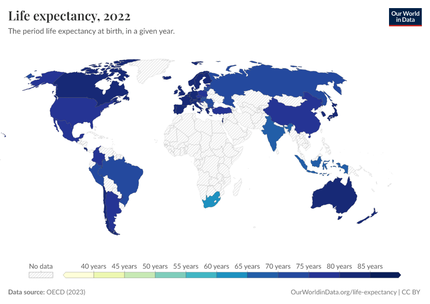 “Data Page: Life expectancy at birth”, part of the following publication: Saloni Dattani, Lucas Rodés-Guirao, Hannah Ritchie, Esteban Ortiz-Ospina, and Max Roser (2023) - “Life Expectancy”. Data adapted from OECD. Retrieved from https://auto-wildfires.owid.pages.dev:8789/20250909-093708/grapher/life-expectancy-at-birth-oecd.html [online resource] (archived on September 9, 2025).How to cite this data