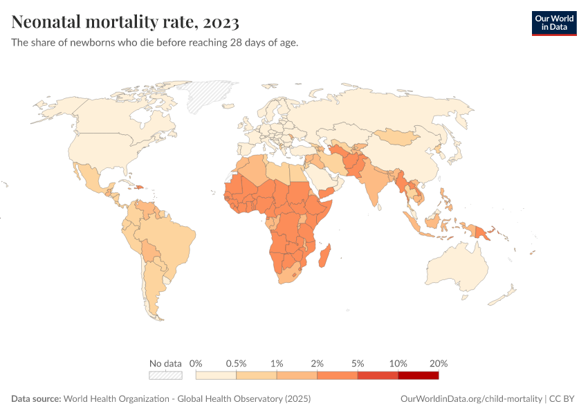 World Health Organization - Global Health Observatory (2025) – processed by Our World in Data. “Neonatal mortality rate” [dataset]. World Health Organization, “Global Health Observatory” [original data]. Retrieved March 2, 2026 from https://auto-wildfires.owid.pages.dev:8789/20260119-070102/grapher/neonatal-mortality-rate-gho.html (archived on January 19, 2026).