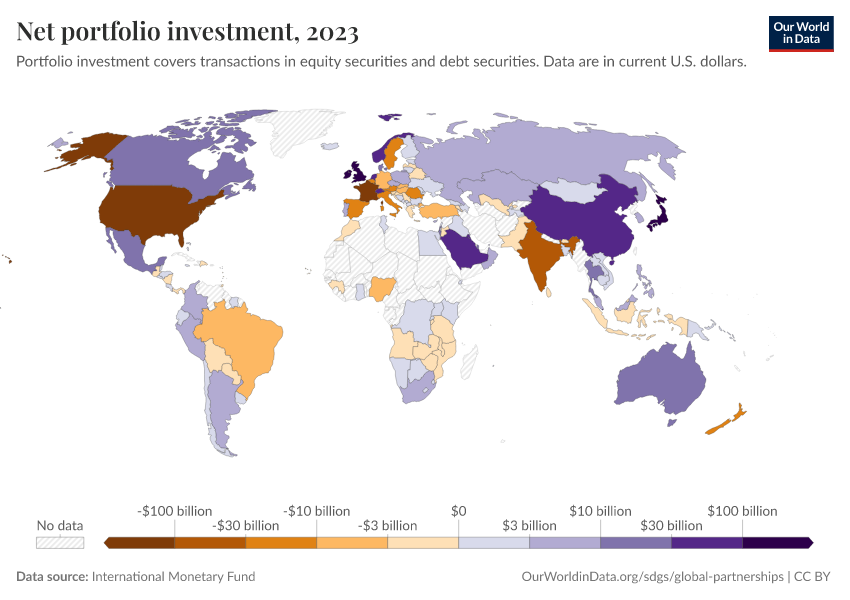 International Monetary Fund – processed by Our World in Data. “Net portfolio investment” [dataset]. International Monetary Fund, “International Monetary Fund, Balance of Payments Statistics Yearbook and data files.” [original data]. Retrieved March 2, 2026 from https://auto-wildfires.owid.pages.dev:8789/20260130-180113/grapher/net-portfolio-investment.html (archived on January 30, 2026).
