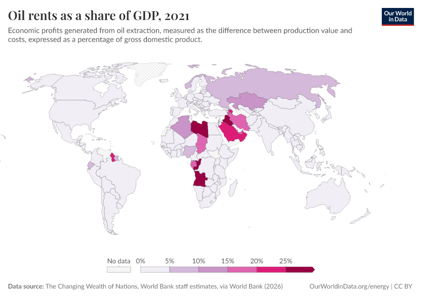 “Data Page: Oil rents as a share of GDP”. Our World in Data (2026). Data adapted from The Changing Wealth of Nations, World Bank staff estimates, via World Bank. Retrieved from https://auto-wildfires.owid.pages.dev:8789/20260202-181317/grapher/oil-rents-as-a-share-of-gdp.html [online resource] (archived on February 2, 2026).How to cite this data