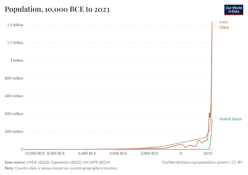 Population by country, available from 10,000 BCE to 2023, based on data and estimates from different sources.