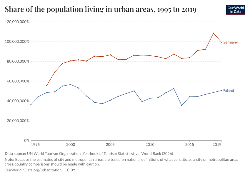 “Data Page: Share of the population living in urban areas”. Our World in Data (2026). Data adapted from World Urbanization Prospects - UN Population Division, via World Bank. Retrieved from https://auto-wildfires.owid.pages.dev:8789/20260202-181317/grapher/share-of-population-urban.html [online resource] (archived on February 2, 2026).