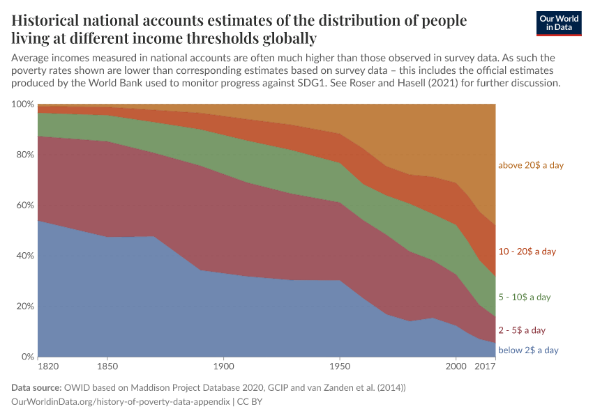 Joe Hasell (2019) - “Data appendix – The fight against global poverty: 200 years of progress and still a very long way to go” Published online at OurWorldinData.org. Retrieved from: 'https://auto-wildfires.owid.pages.dev:8789/20260128-140124/history-of-poverty-data-appendix.html' [Online Resource] (archived on January 28, 2026).BibTeX citation