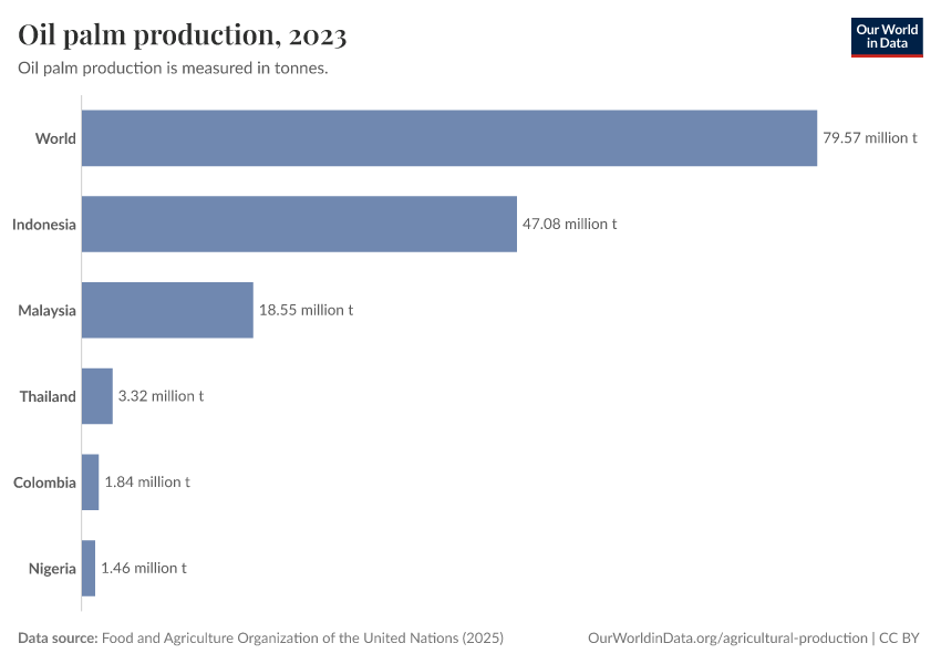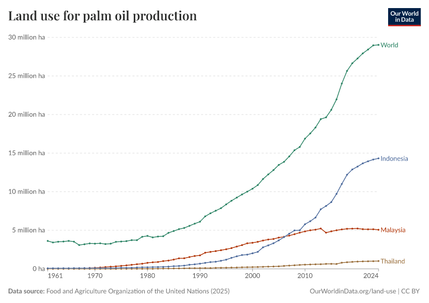 Hannah Ritchie (2021) - “Palm Oil” Published online at OurWorldinData.org. Retrieved from: 'https://auto-wildfires.owid.pages.dev:8789/20260226-122020/palm-oil.html' [Online Resource] (archived on February 26, 2026).BibTeX citation