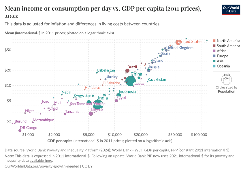 When the average of people’s income in a country is that low, then the only way the majority of people can possibly leave poverty behind is when that country’s economy grows so that average incomes increase.