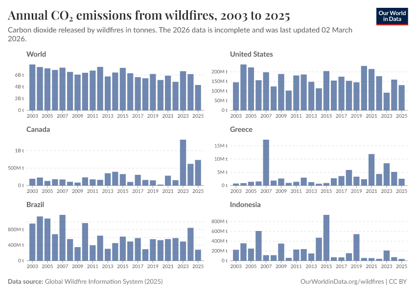 Veronika Samborska and Hannah Ritchie (2024) - “Wildfires” Published online at OurWorldinData.org. Retrieved from: 'https://auto-wildfires.owid.pages.dev/wildfires' [Online Resource]BibTeX citation